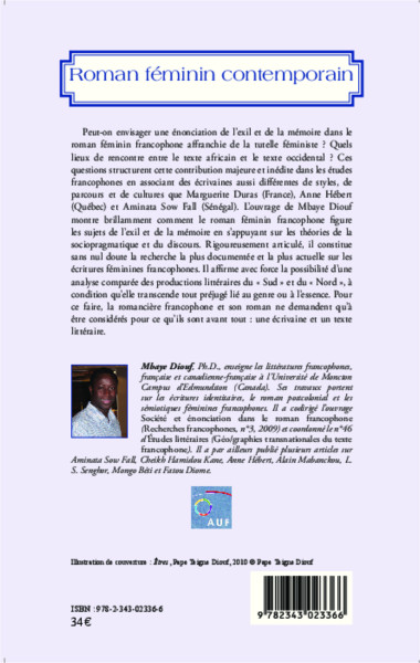 Peut-on envisager une énonciation de l'exil et de la mémoire dans le roman féminin francophone affranchi de la tutelle féministe ? Quels lieux de rencontre entre le texte africain et le texte occidental ? Ces questions structurent cette contribution majeure et inédite dans les études francophones en associant des écrivaines aussi différentes de style, de parcours et de cultures que Marguerite Duras (France), Anne Hébert (Québec) et Aminita Sow Fall (Sénégal).