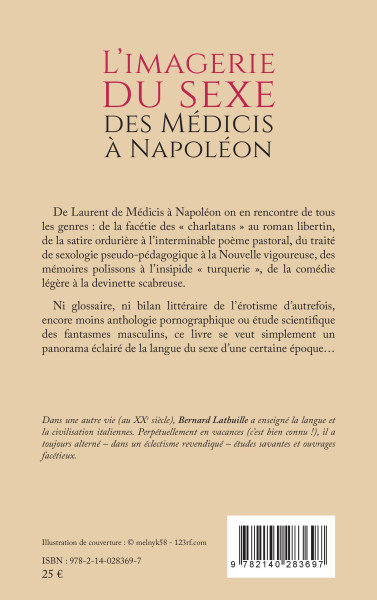 De Laurent de Médicis à Napoléon on en rencontre de tous les genres : de la facétie des « charlatans » au roman libertin, de la satire ordurière à l'interminable poème pastoral, du traité de sexologie pseudo-pédagogique à la Nouvelle vigoureuse, des mémoires polissons à l'insipide « turquerie », de la comédie légère à la devinette scabreuse. Ni glossaire, ni bilan littéraire de l'érotisme d'autrefois, encore moins anthologie pornographique ou étude scientifique des fantasmes masculins, ce livre se veut simplement un panorama éclairé de la langue du sexe d'une certaine époque...