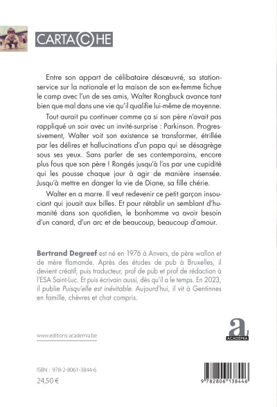 Tout aurait pu continuer comme ça si son père n’avait pas rappliqué un soir avec un invité-surprise : Parkinson. Progressivement, Walter voit son existence se transformer, étrillée par les délires et hallucinations d’un papa qui se désagrège sous ses yeux. Sans parler de ses contemporains, encore plus fous que son père ! Rongés jusqu’à l’os par une cupidité qui les pousse chaque jour à agir de manière insensée.